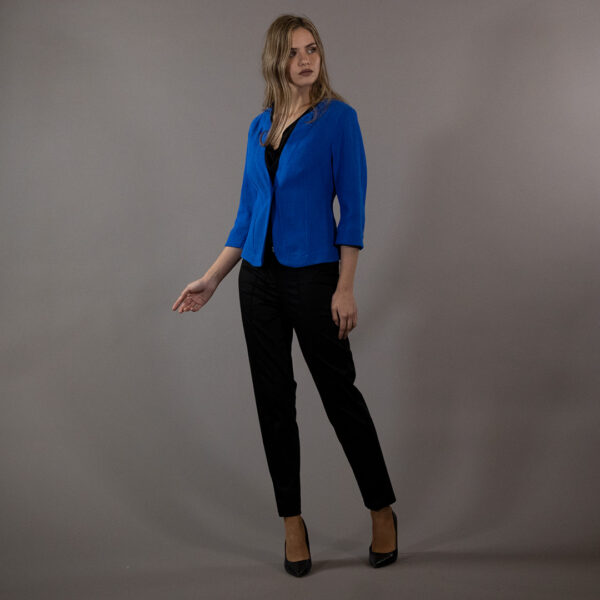 Блејзер АКОН/1 е модерен и елегантен струкиран модел наменет за жени кои сакаат јасна силуета, прецизен крој и впечатлив стил. Со својата форма, блејзерот нежно ја следи линијата на телото и создава уреден, женствен изглед.