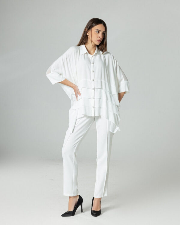 Кошулата ВАЈТ е создадена за жени кои го сакаат минимализмот, но со впечатлив модерен израз. Со својот опуштен крој и елегантен пад, ова парче носи леснотија и софистицираност во секоја комбинација.