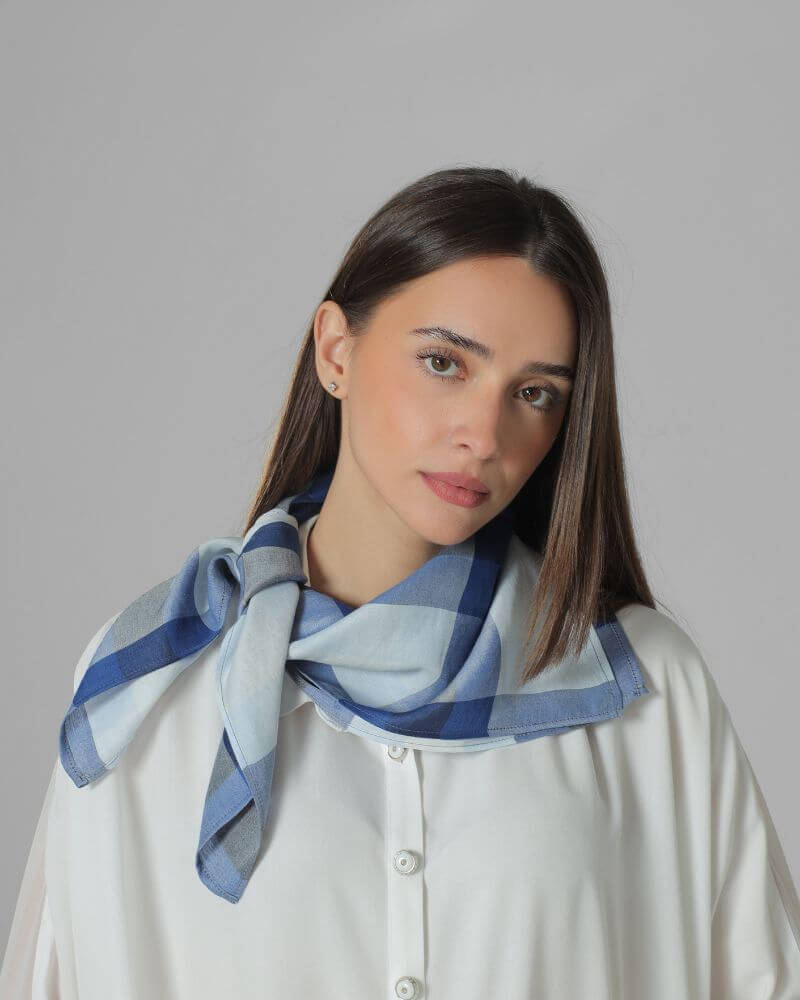 Карираниот дезен во нежни нијанси ѝ дава модерен и софистициран карактер, што ја прави лесна за комбинирање со различни аутфити – од класични кошули до лежерни комбинации. Може да се носи околу врат, како акцент на коса или како стилски додаток на чанта.