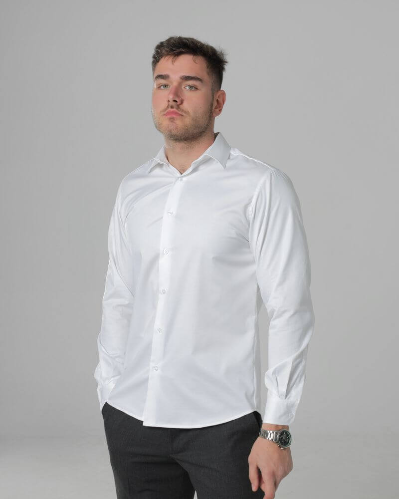 Машката кошула КЛАСИК/1 е основа на секој префинет машки стил. Со својот чист дизајн и безвременска бела боја, ова парче претставува задолжителен избор за секој маж кој сака да изгледа уредно, елегантно и самоуверено.