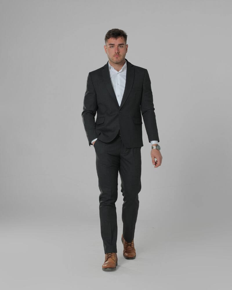 Сакото е струкирано за да ја истакне машката силуета, додека панталоните се дизајнирани за максимална удобност и совршено прилегање. Материјалот овозможува лесно движење и пријатно чувство, што го прави ова одело идеално и за подолги денови исполнети со обврски.